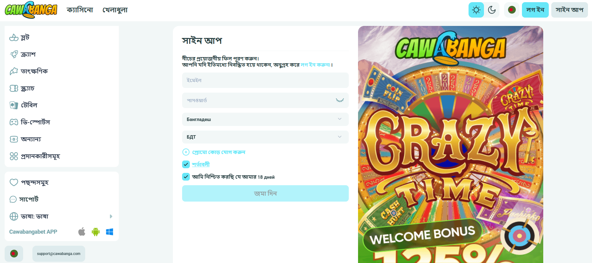 For Bangladeshi players, Cawabanga Casino offers a fully localized experience — from BDT currency support to bKash, Nagad, and Rocket payments, all processed through encrypted channels. Players can easily create an account, deposit funds within minutes, and start playing a wide selection of games from trusted global providers.