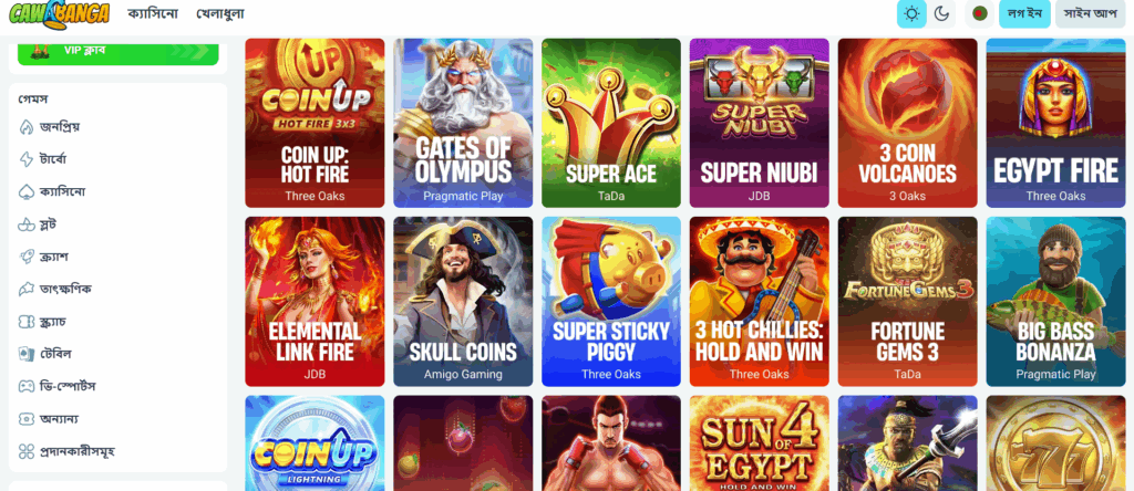 Cawabanga Casino offers a rich and diverse gaming library with over 3,000 titles, covering everything from classic slots to live dealer tables and crash games. Each game is provided by a certified international studio, ensuring fair play, transparency, and seamless gameplay for Bangladeshi users.